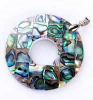 Abalone Shell Pendant with Zinc Alloy Donut Shape Gemstone Mixed Colors Jewelry Accessories 41x40mm